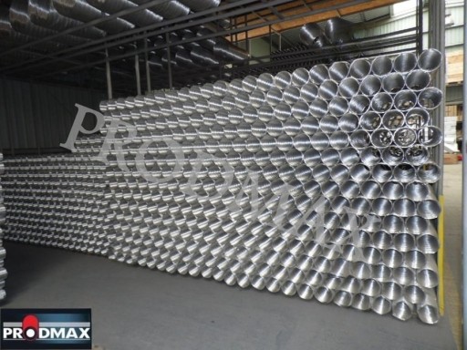 Elastyczna rura aluminiowa typu spiro produkowana jest z taśmy aluminiowej o szerokości 60mm i grubości 0,1mm (dla średnic do fi 200mm) oraz grubości 0,12mm (dla średnic powyżej fi 200mm). Wyprodukowana rura ma długość handlową do 3mb i jest w procesie produkcji ściskana do ok.1mb.