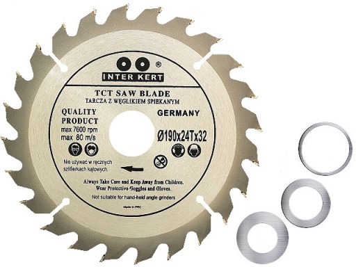 DOBRE - MOCNE - SPRAWDZONE - ZNANEJ OD LAT FIRMY INTER-KERT I DO TEGO W SUPER CENIE JAK ZA SWOJĄ JAKOŚĆ TARCZE WIDIOWE DO CIĘCIA DREWNA O ŚREDNICY 190 mm x OTWÓR 32 mm (potrzebna redukcja na 30/28/25.4 mm napisz w komentarzu, dołożymy) x 24 ZĘBY