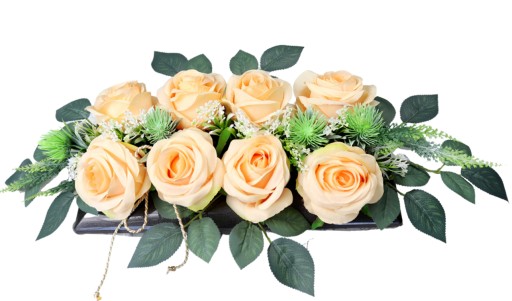 Ze względu na ręczne wykonanie dekoracji poszczególne kompozycje mogą się delikatnie od siebie różnić, ale nie tyle by zaburzyć jej styl, wielkość i wiodącą kolorystykę kompozycji.