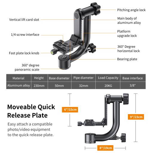 Profesjonalna głowica gimbalowa 3D K&F Concept z szybkozłączką