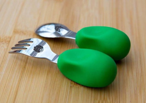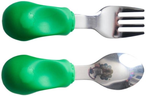 Przeznaczone dla dzieci, które rozwijają umiejętność posługiwania się prawą i lewą dłonią w koordynacji ręka-oko. Sztućce ćwiczące uścisk dłoniowy (Palmar Grip) oraz chwyt cęgowy, używając palców wskazujących i kciuka. Wspierają budowanie pewności siebie podczas samodzielnego spożywania posiłków.