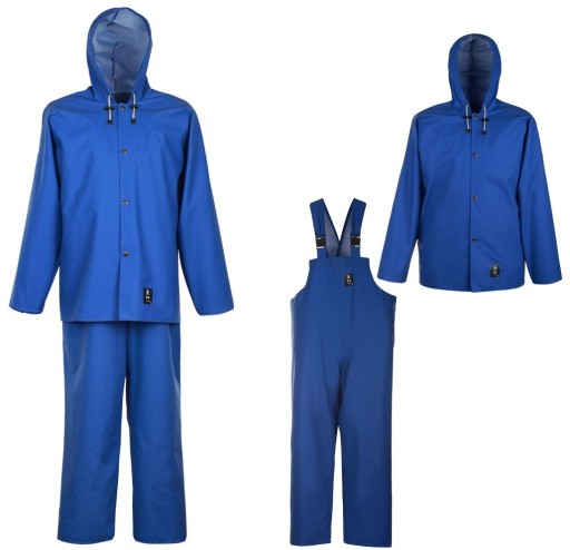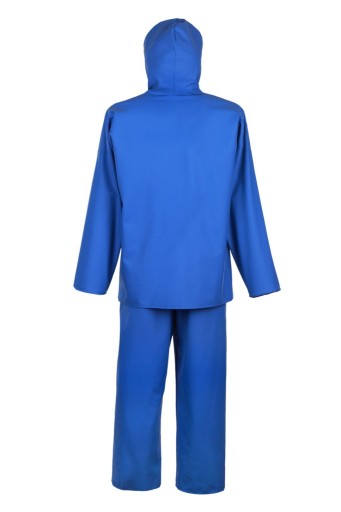 Ubranie złożone z kurtki z kapturem zapinanej na napy oraz spodni ogrodniczek z regulowanymi szelkami z elastyczną, szeroką gumą z tyłu. Model produkowany z wodoochronnej tkaniny Plavitex, przeznaczony do użytku w niesprzyjających warunkach pogodowych. Zapewnia skuteczną ochronę przed wiatrem i deszczem. Wodoochronna powłoka zapobiega przenikaniu wilgoci. Technika obustronnego zgrzewania zwiększa wytrzymałość szwów. Produkt spełnia standardy europejskich norm: EN ISO 13688 i EN 343.