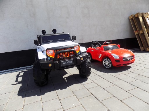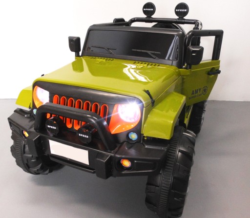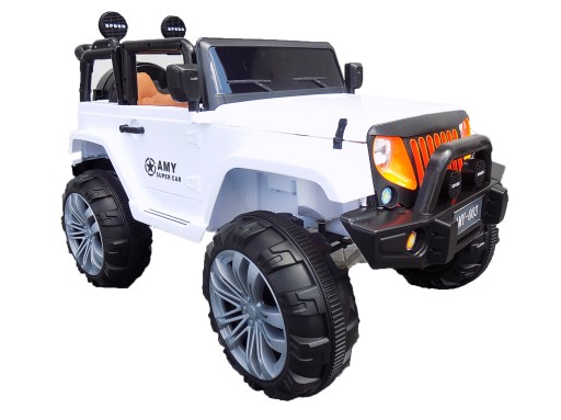DUŻY DWUOSOBOWY JEEP MONSTER NA AKUMULATOR Z CZTERMA SILNIKAMI I DUŻYM AKUMULATOREM 12V, EFEKTAMI DŹWIĘKOWYMI, ZDALNYM PILOTEM STEROWANIA 2.4G, AMORTYZATORAMI, WEJŚCIEM AUX, USB I SD DO ODTWARZANIA MUZYKI MP3 ORAZ WSKAŹNIKIEM NAŁADOWANIA AKUMULATORA