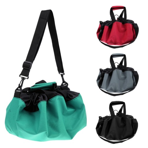 Otwórz torbę i masz dużą matę do przewijania o średnicy 85 cm / 33,5 cala. Pociągnij za sznurek, aby zamknąć worek.