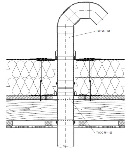 - Przepust kablowy dachowy TOPWET posiada zintegrowany kołnierz hydroizolacji dla szczelnego połączenia z pokryciem dachowym