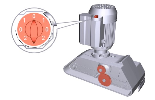 Przełącznik na silniku umożliwia szybkie ustawienie pierwszej i drugiej prędkości podawania oraz szybką zmianę kierunku podawania przód-tył, a zmieniając wewnętrzne ułożenie zębatek uzyskuje się 4 prędkości.