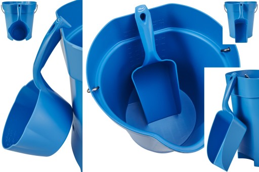 Wiadro zaopatrzono w solidny, wytrzymały uchwyt, wykonany ze stali nierdzewnej oraz w dodatkowy uchwyt pomocniczy, który znajduje się u dołu tylnej strony wiadra.
