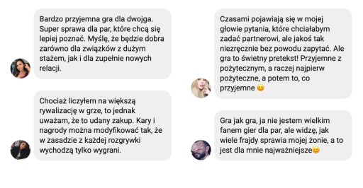 Pary zgodnie przyznały, że gra pomogła im w zrozumieniu wzajemnych potrzeb, a także przyczyniła się do polepszenia ich relacji i wzmocnienia łączącej je więzi.