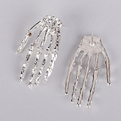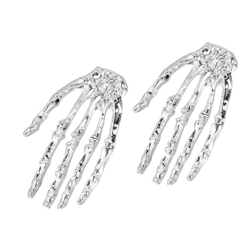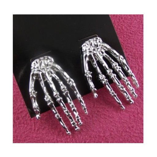Ta para punkowych kolczyków ze szkieletem w stylu gotyckim jest bardzo fajna i Posiada lśniący srebrny dużą szkieletową rękę Ta para kolczyków ze szkieletem może podkreślić Twój osobowość
