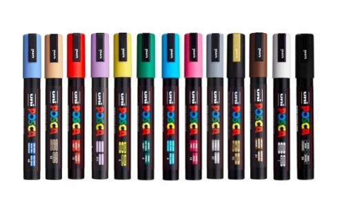 Marker PC- 5M jest najbardziej uniwersalnym z gamy produktów POSCA. Średnia grubość końcówki umożliwia robienie zarówno precyzyjnych kresek jak i nakładanie koloru.