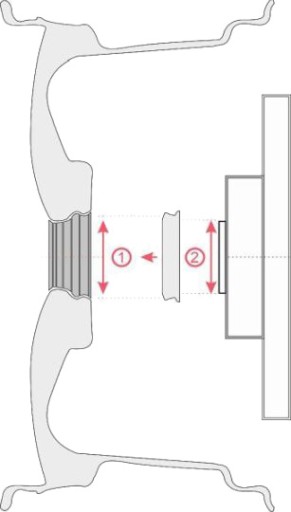 Stosując pierścień centrujący podczas montażu felgi aluminiowej możemy uzyskać zgodność średnic: