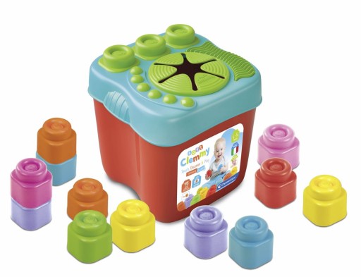 Pojemnik-wiaderko z 15 klockami. Miękkie wieczko z elementami sensorycznymi zapewnia wiele zabawy i zachęca do odkrywania. Łatwy do otwierania i zamykania.
