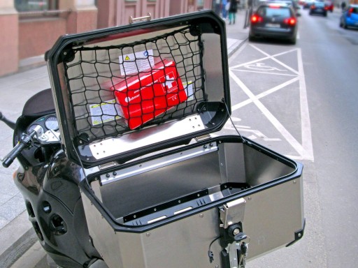 Dedykowana siatka zwiększa użyteczną pojemność kufra, pozwalając umieścić apteczkę, rękawiczki lub inne drobne przedmioty pod pokrywą wewnątrz kufra motocyklowego marki Givi.