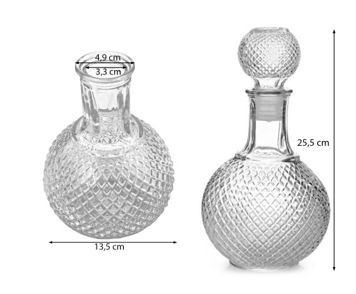 Karafka do wina, wody, herbaty, lemoniady i innych napojów z korkiem została wykonana z najwyższej jakości szkła. Jest całkowicie bezpieczna dla zdrowia i dopuszczona do kontaktu z żywnością. Korzystanie z niej jest bezpieczne i wygodne - karafka ma solidnie, stabilne dno. Karafka idealnie nadaje się do serwowania soków, drinków, wody, koniaku, wina czy nalewek. Charakterystyczny kształt karafki nadaje jej klasycznego charakteru co sprawia, że niewątpliwie będzie stanowiła ozdobę każdego stołu i domu. Karafka idealna dla wielbicieli włoskich klimatów. Ma ciekawą budowę - zamykana korkiem, chroni napoje przed owadami.