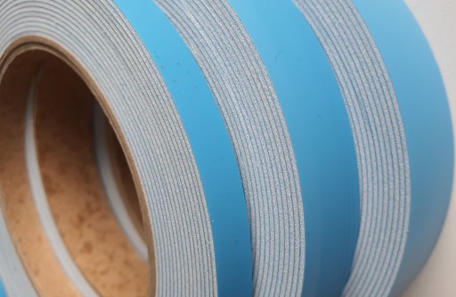 Jedna ze stron taśmy zabezpieczona jest przekładką foliową w kolorze niebieskim.