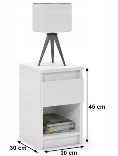 Szafka Nocna Biała z Szufladą i Półką 45x30 cm Stolik Nocny Regalik