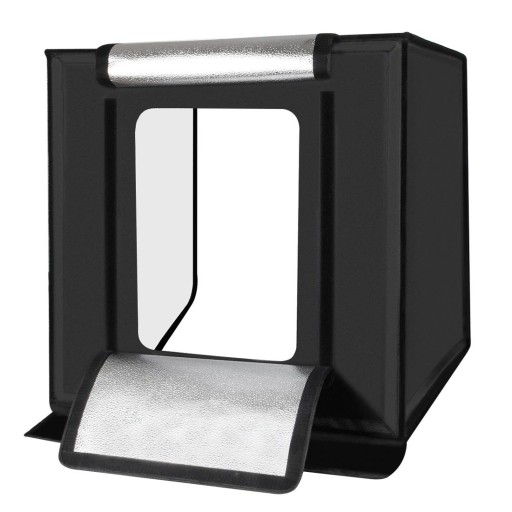 Namiot posiada otwieraną górną pokrywę, dzięki czemu zdjęcia możemy wykonać także z góry. Uniwersalne tła w zestawie pozwolą dostosować kolorystykę do konkretnego produktu. Dodatkowe tła są także dostępne jako akcesoria.