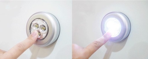 3 diodowa lampka LED na baterie. Dzięki mocnemu i energooszczędnemu światłu oraz braku jakichkolwiek przewodów lampka będzie idealnym źródłem światła np. w głębokiej szafie, kuchni lub sypialni.