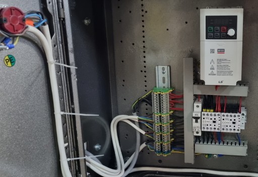 Prędkość taśmy przeciwbieżnej na stole formującym regulowana falownikiem.