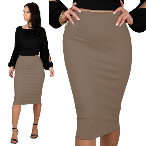 Spódnica wykonana jest z wysokogatunkowej dzianiny elastycznej. Materiał nie mechaci się ani nie "kulkuje". W pasie wszyta guma podwinięta do środka.