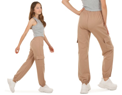 - fason z modnymi, szerokimi nogawkami zakończonymi gumką oraz z kieszeniami po bokach,