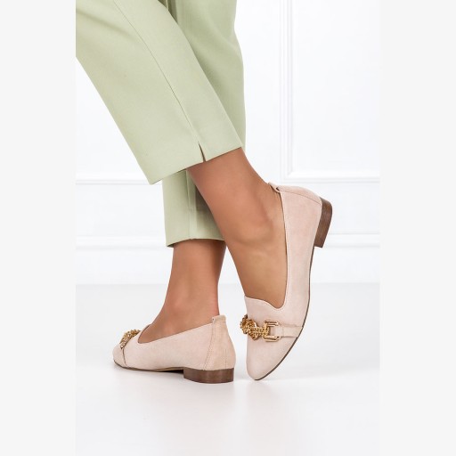 Beżowe lordsy zostały wyprodukowane w Polsce z najlepszych gatunków skór. Ręczne wykonanie butów gwarantuje doskonałą jakość, wygodę i dopasowanie do stopy. Wnętrze obuwia zostało wytworzone z wysokiej jakości skóry, która zapewnia maksymalny komfort użytkowania. Półbuty lordsy to eleganckie i stylowe obuwie. Subtelna złota ozdoba dodaje wyrafinowania, podkreślając styl tego modelu. Płaski obcas sprawia, że są one bardzo wygodne. Wybierz ten fason jeśli cenisz sobie komfort i chcesz modnie uzupełnić swoją stylizację. Pasują zarówno do formalnych jak i nieformalnych stylizacji.