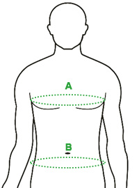 - A. Obwód klatki piersiowej - mierzymy obwód klatki piersiowej pod pachami, trzymając miarę na jednej wysokości.