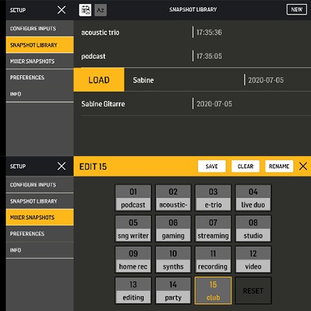 Jednego dnia nagrywasz podcast, a drugiego wokale? Miksujesz wielu artystów na tym samym koncercie? Albo – ogólnie rzecz biorąc - FLOW 8 jest Twoim stałym towarzyszem w różnych zastosowaniach nagłośnieniowych i chcesz mieć perfekcyjnie dostrojone presety, dostępne na wyciągnięcie ręki w ciągu kilku sekund? Zintegrowana biblioteka snapshotów i opcja przechowywania nieograniczonej ich ilości w aplikacji FLOW 8 daje Ci natychmiast nieograniczone możliwości. Zapisuj, edytuj i ładuj bez zwłoki ustawienia miksera z poziomu urządzenia lub poprzez aplikację. Możesz nawet wyzwalać ładowanie snapshotów za pomocą podłączonego footswitcha tak, aby ożywić swój występ. Podczas, gdy urządzenie oferuje 15 wewnętrznych slotów na presety, aplikacja może przechowywać nieograniczoną liczbę snapshotów posortowanych według nazwy, daty i czasu.