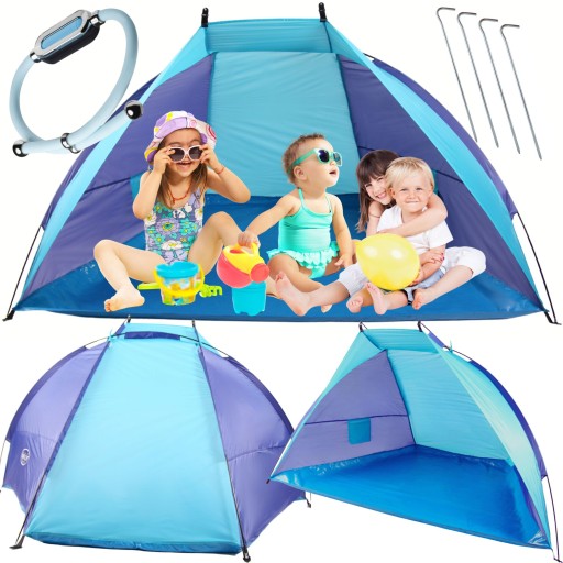 - ✅Półotwarty namiot plażowy skutecznie chroni przed nadmiernym słońcem i promieniami UV 30+. Od wewnątrz pokryty specjalną powłoką, która sprawia, że prażące słońce nie spowoduje oparzeń u osób przebywających pod osłoną namiotu