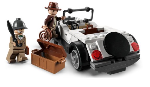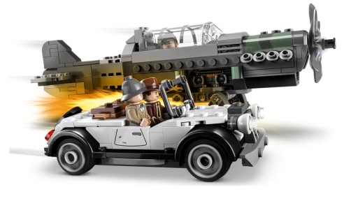 Zestaw zawiera trzy minifigurki: Indianę Jonesa ze słynnym biczem, jego ojca, profesora Henry'ego Jonesa Seniora™ trzymającego dziennik, oraz pilota myśliwca, dzięki czemu dzieci mogą odegrać słynną scenę pościgu z filmu „Indiana Jones i ostatnia krucjata”.