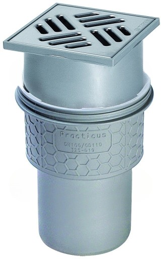 Wpust Practicus DN100, odpływ pionowy, kratką 120x120 nierdzewną