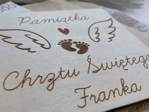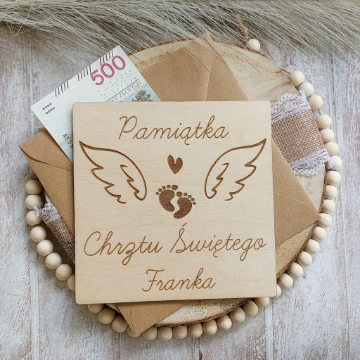 KARTKA DREWNIANA PAMIĄTKA CHRZTU ŚWIĘTEGO PREZENT NA CHRZEST GRAWER (PERSONALIZACJA)
