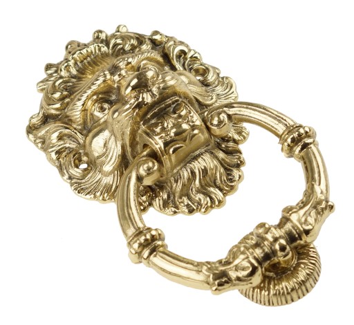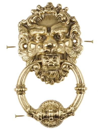 Kołatka Drzwiowa Duża Lew Mosiądz Złoty