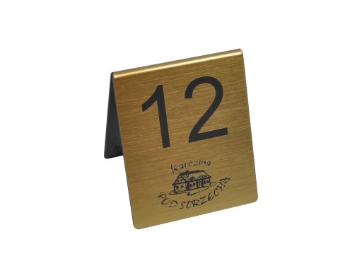 Numerek na stół ZŁOTY SZCZOTKOWANY A1 wykonany jest z laminatu grawerskiego o grubości 1,6 mm.