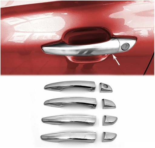 Piękny zestaw 8x Chromowanych pełnych nakładek na całe klamki zewnętrzne drzwi. nie tylko fronty