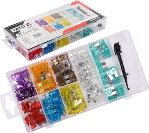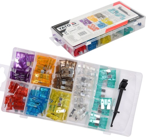 Zestawy bezpieczników chroniących instalacje elektryczne w autach przed uszkodzeniem spowodowanym nadmiernym natężeniem prądu. Stosowane m.in. do kompresorów, pompek elektrycznych, prostowników, rozdzielaczy gniazd. Zapakowane w poręczną kasetkę.