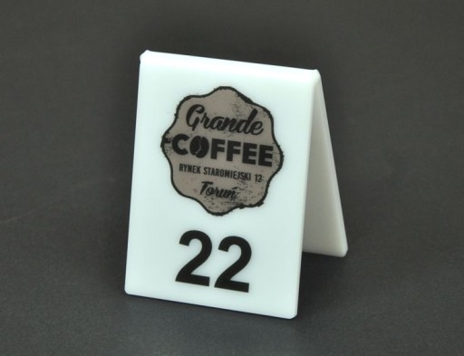 Numerki na stół w kształcie litery V wykonane są z plexi mlecznej.