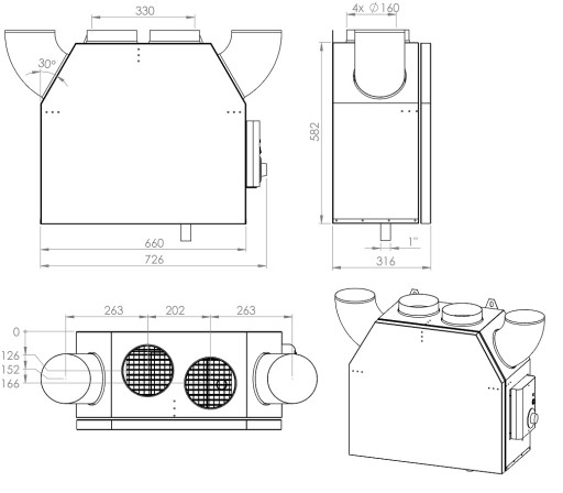 Obudowa wykonana jest z cienkich blach alum cynk obustronnie ocynkowanych, które są specjalnie kształtowane na obrabiarkach numerycznych i montowane na stałe przy pomocy nitów ocynkowanych tworząc sztywną samonośną konstrukcję. Materiał alum cynk zapewnia to doskonałą ochronę powierzchni które mają kontakt z powietrzem wentylacyjnym oraz uszczelnia wszystkie elementy obudowy. Pod względem akustycznym i termicznym, obudowa zabezpieczona jest 30 milimetrową warstwą wełny