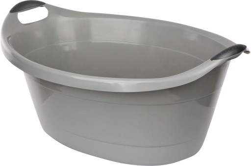 Duża, owalna miska - 40 L - to niezbędny przedmiot podczas różnych domowych czynności, np. wyjmowania prania z pralki.