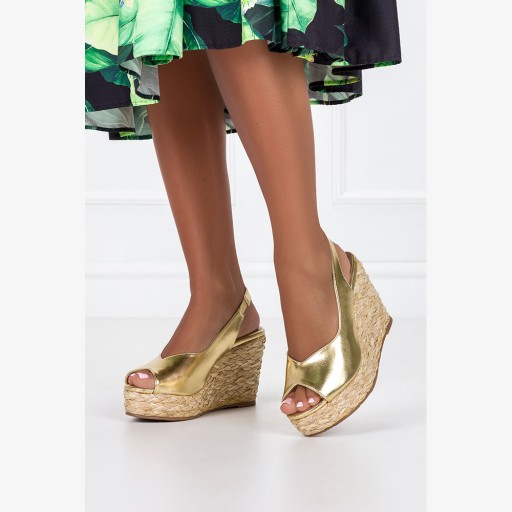 Złote sandały espadryle błyszczące na koturnie Casu ER23X9-G