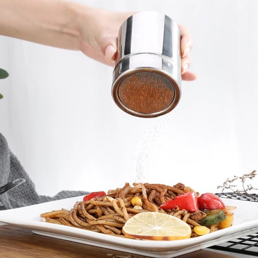 Dzięki pojemnikowi z sitkiem równomiernie obsypiesz ciasta i kawy wybraną posypką (np. cynamonem). Dyspenser został wykonany z wysokiej jakości stali nierdzewnej, dzięki czemu jest wytrzymały i odporny na uszkodzenia mechaniczne. Plastikowa pokrywka skutecznie zabezpiecza przed wietrzeniem posypek oraz ich przypadkowym rozsypaniem.