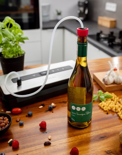 Można użyć go do zamknięcia otwartego wina, które szybko traci swój smak. Funkcja ta rewelacyjnie sprawdzi się również w przypadku świeżych soków oraz innych płynnych produktów używanych sporadycznie.