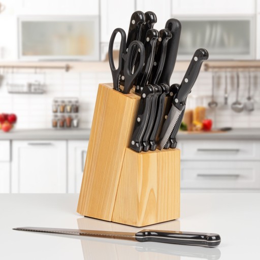 - Wysokiej jakości drewniany blok na noże do bezpiecznego i stylowego przechowywania