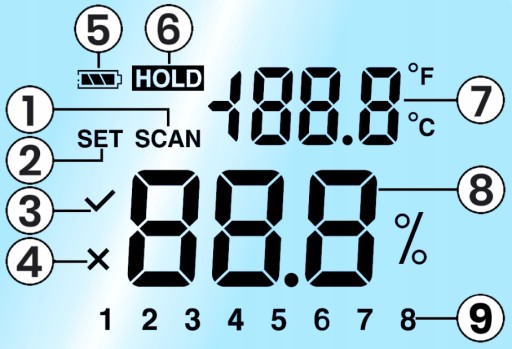 - Błąd pomiaru: ± 2°C (± 3.6°F)