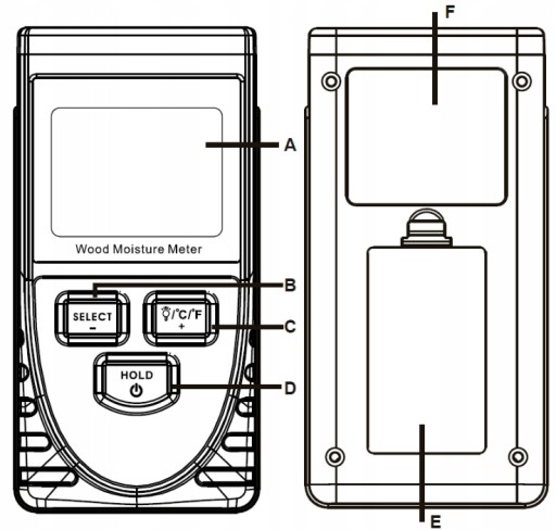 ▶️ Do wyboru jest 8 trybów do pomiaru w zależności od gęstości drewna. Zakres pomiarowy jest odpowiedni dla większości rodzajów drewna
