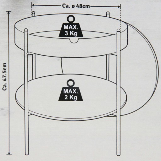- Podstawa stolika wykonana jest z metalu malowanego proszkowo, natomiast blat wykonany jest z płyty MDF, charakteryzującej się wysoką wytrzymałością na uszkodzenia.