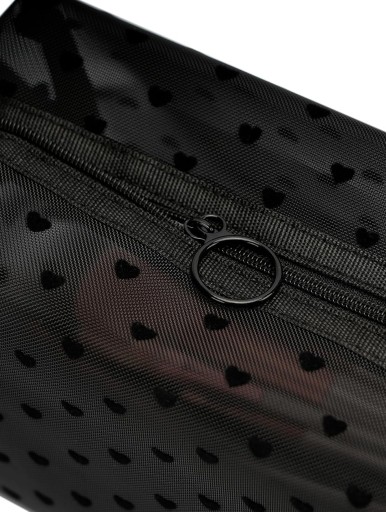 Siateczkowe detale w kształcie serduszek dodają uroku, a jednocześnie kosmetyczka jest odporna na zabrudzenia.