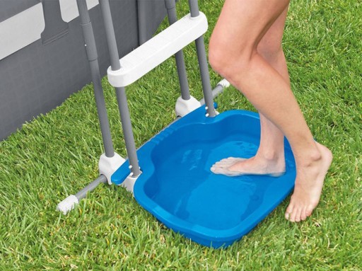 Czyściciel do stóp firmy Intex służy jako wycieraczka dla osoby wchodzącej do basenu ogrodowego. Dzięki temu wszystkie zabrudzenia przyklejone do stóp pozostaną na niebieskiej tacce i nie zostaną przeniesione do wody. Antypoślizgowe dno niweluje ryzyko poślizgnięcia się. Czyściciel można wsunąć pomiędzy ramę drabinki basenowej Intex- idealnie pasuje do wszystkich modeli. Korzystając z niego osoby mogą jednocześnie przytrzymać się ramy schodków do basenu. To praktyczny dodatek do każdego basenu ogrodowego.