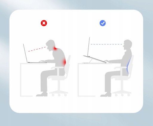 Produkt posiada lekką, ale stabilną aluminiową konstrukcję z możliwością regulacji oraz złożenia. Pozwala na ułożenie urządzenia pod odpowiednim kątem, co skutkuje lepszą ergonomią pracy oraz utrzymaniem zdrowej pozycji podczas pracy.