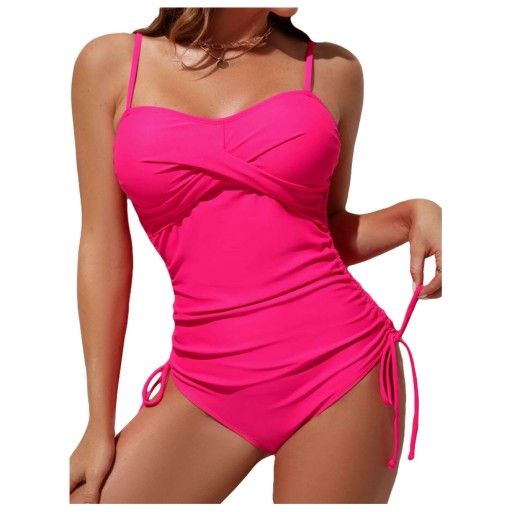 Strój posiada regulowane ramiączka,z przodu maskujące marszczenia